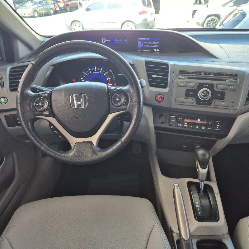 Honda New Civic LXS 1.8 Flex Automático 13/14, completo, com ar-condicionado digital, direção elétrica, vidros, travas e retrovisores elétricos, piloto automático, volante multifuncional, airbag duplo, freios ABS, rodas de liga leve e sistema de som original. Conforto, desempenho e confiabilidade da marca Honda. À venda na PEPPY AUTOMÓVEIS. Sujeito a erros de digitação ou inserção de dados.
