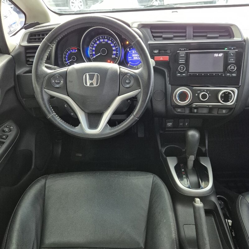 Honda Fit EXL automático 14 15 com ar condicionado digital, direção elétrica, vidros e travas elétricas, banco de couro, controles de som no volante, sensor de estacionamento, câmera de ré, airbags e excelente espaço interno. Veículo confortável, econômico e confiável à venda na PEPPY AUTOMOVEIS. Possibilidade de erros de digitação.