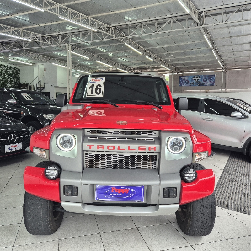Troller T4 XLT 3.2 2016, motor 3.2 turbodiesel de 200 cv, câmbio manual de 6 marchas, tração 4x4 com reduzida, ar-condicionado, direção hidráulica, vidros e travas elétricas, airbag duplo, freios ABS, rodas de liga leve aro 17, pneus de uso misto, estribos laterais, rack de teto e interior em ótimo estado. Disponível na PEPPY AUTOMÓVEIS. Sujeito a erros de digitação.